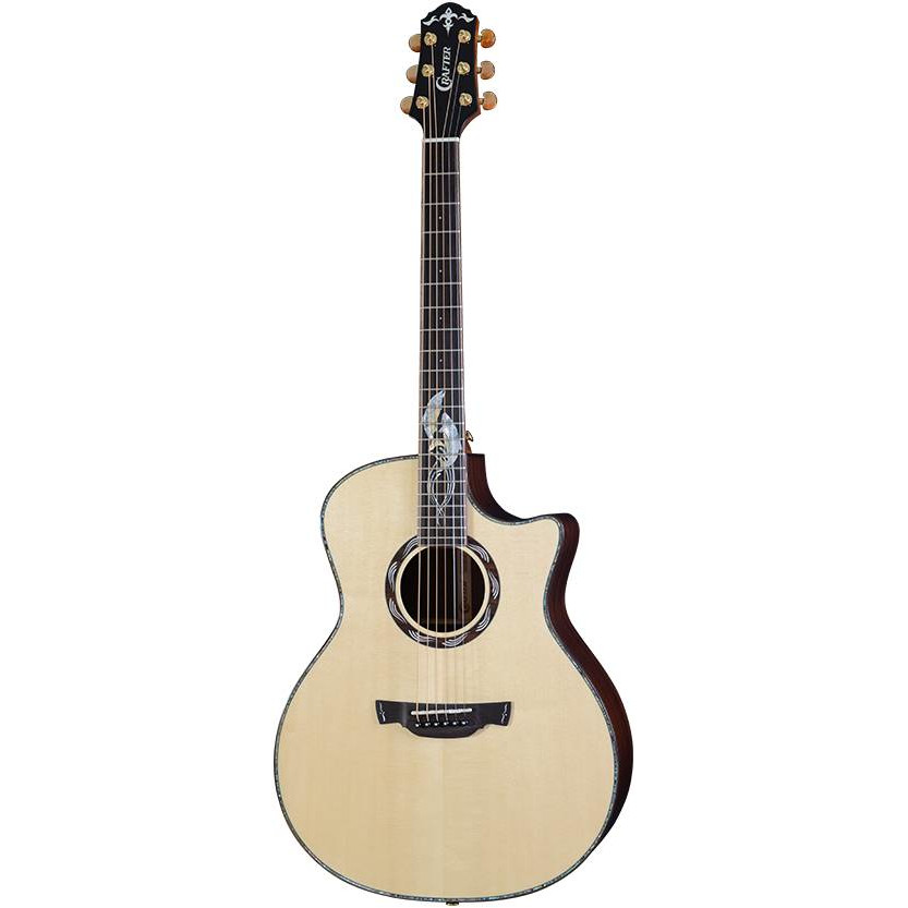 Электроакустическая; шестиструнная; форма корпуса: Dreadnought с вырезом; верхняя дека: ель Энгельмана; нижняя дека, обечайка: огненный ованкол; гриф: кайя; накладка грифа: браунвуд; цвет: натуральный