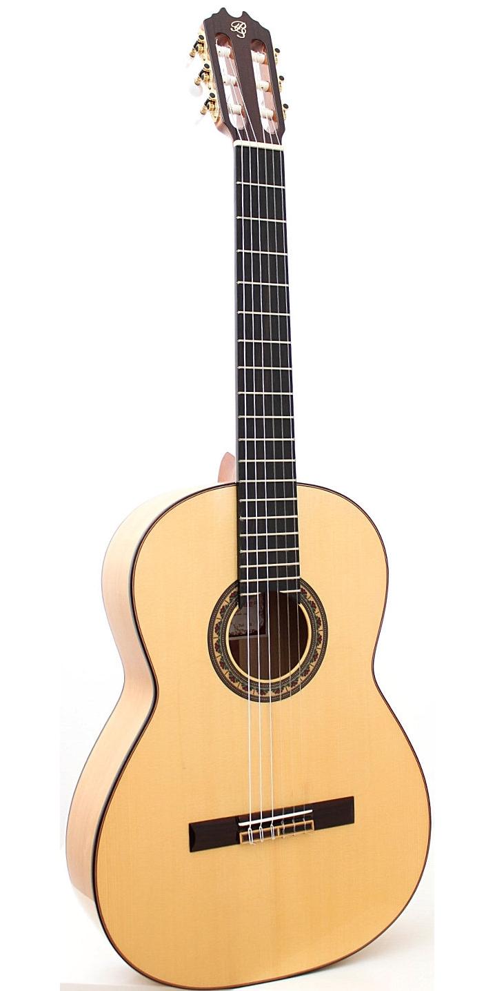 Верхняя дека массив кедра, нижняя и обечайки ламинат брина, гриф махагони, накладка и бридж палисандр, цвет натуральный, глянцевый. Испания