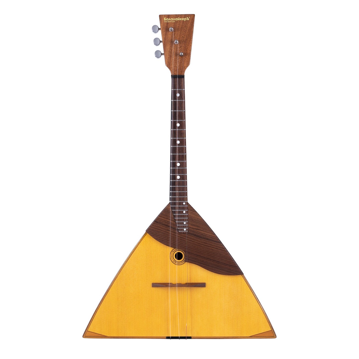 Академическая, 7 клепок, верхняя дека массив ели, корпус массив клена, гриф палисандр, накладка эбен, подставка палисандр, цвет золотисто-желтый, полуматовый. Россия
