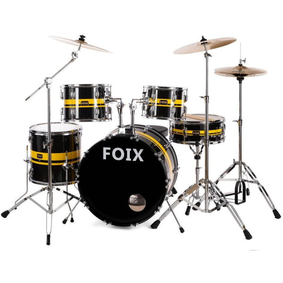 Бас-барабан 12" x 4", Малый барабан 12" x 4", Том 2 х 10" x 3,5", 1 х 12" x 4", Hi-hat 12", Crash 14", Ride 16", модуль, педали, стойки, стул, кабели, цвет перламутровый.