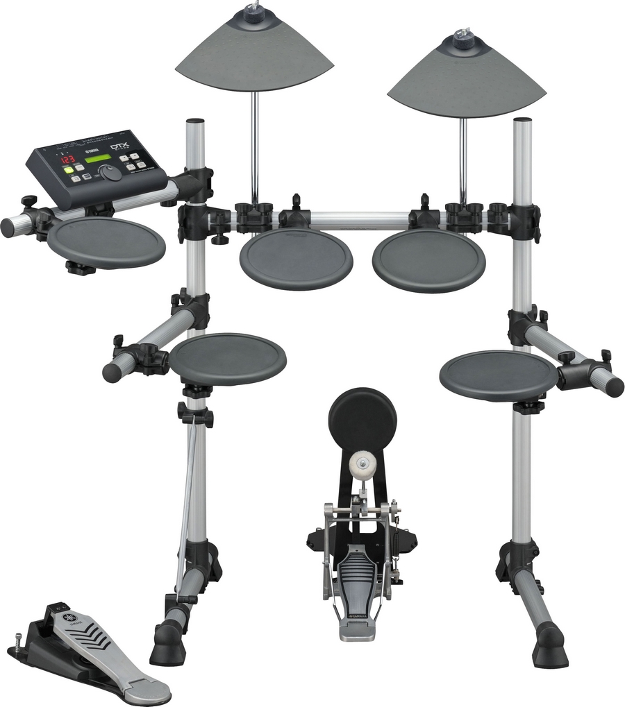 Начального уровня в составе модуля DTX400, четырех пэдов малого барабана и томов, трех пэдов хета и тарелок, педали хета, педали бас-барабана KU100, стойки.